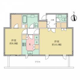 間取り 2K 専有面積 72.77m2(22.0坪)