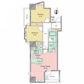 間取り 2LDK 専有面積 60.05m2(18.1坪) 壁芯