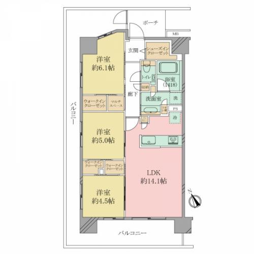 間取り 3LDK 専有面積 71.16m2(21.5坪) 壁芯