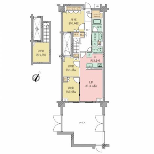 間取り 4LDK 専有面積 84.64m2(25.6坪) 壁芯