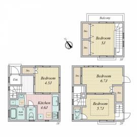 土地面積 47.48m2(14.3坪) 登記簿 別途私道負担15.00m2 建物延面積 70.96m2
