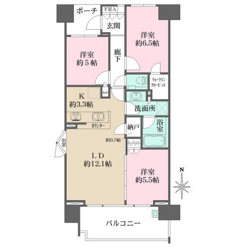 間取り 3LDK 専有面積 70.19m2(21.2坪) 壁芯