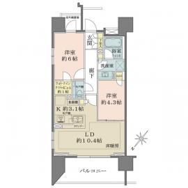 間取り 2LDK 専有面積 54.79m2(16.5坪) 壁芯