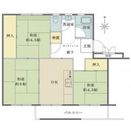 間取り 3DK 専有面積 46.27m2(13.9坪)