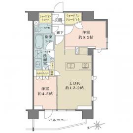 間取り 2LDK 専有面積 56.49m2(17.0坪) 壁芯
