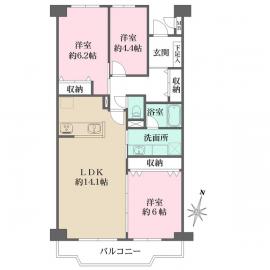 間取り 3LDK 専有面積 72.78m2(22.0坪) 壁芯