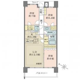 間取り 3LDK 専有面積 75.57m2(22.8坪) 壁芯