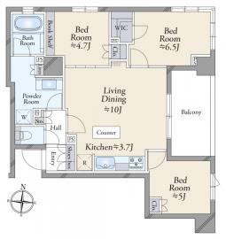 間取り 3LDK 専有面積 68.74m2(20.7坪) 壁芯