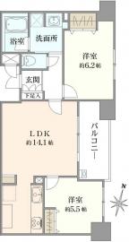 間取り 2LDK 専有面積 59.58m2(18.0坪) 壁芯