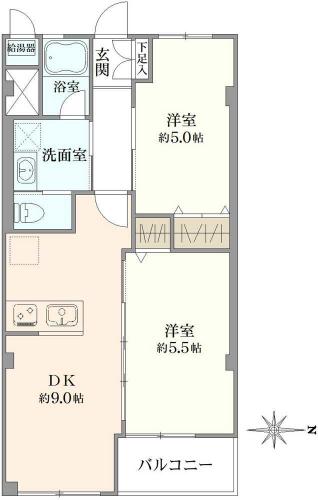 間取り 2LDK 専有面積 50.22m2(15.1坪) 壁芯