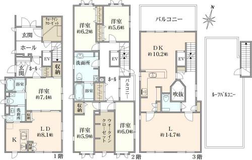 土地面積 194.54m2(58.8坪) 登記簿 建物延面積 217.13m2