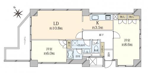 間取り 2LDK 専有面積 66.42m2(20.0坪) 壁芯