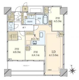 間取り 3LDK 専有面積 73.44m2(22.2坪) 壁芯