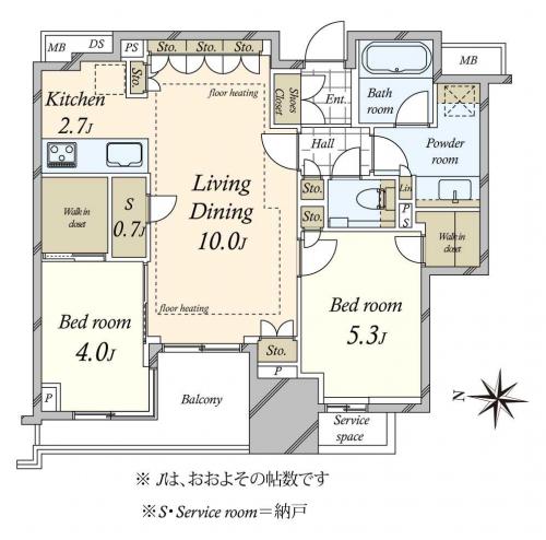 間取り 2SLDK 専有面積 57.23m2(17.3坪) 壁芯