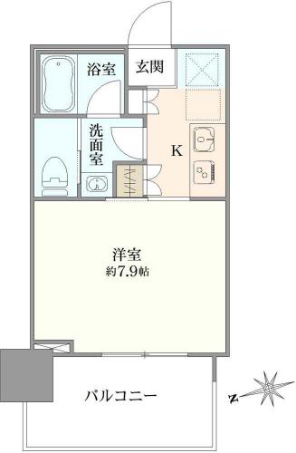 間取り 1K 専有面積 25.13m2(7.6坪) 壁芯