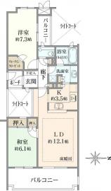 間取り 2LDK 専有面積 67.15m2(20.3坪) 壁芯