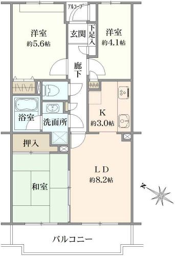 間取り 2SLDK 専有面積 61.07m2(18.4坪) 壁芯