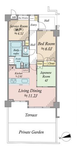 間取り 2SLDK 専有面積 63.74m2(19.2坪) 壁芯