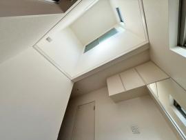 • 天井高の吹抜けに自然光が降りてきて、玄関が開放的で心地よくお迎えできます。