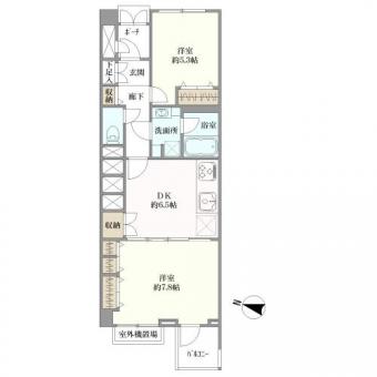 | 間取り | 2DK | 専有面積 | 54.74m2(16.5坪) 壁芯 |