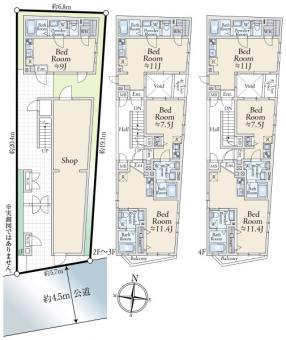 | 土地面積 | 123.89m2(37.4坪) 登記簿 | 建物延面積 | 285.07m2 |