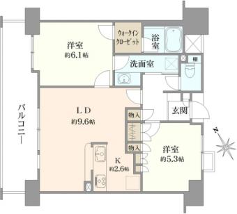 | 間取り | 2LDK | 専有面積 | 54.28m2(16.4坪) 壁芯 |