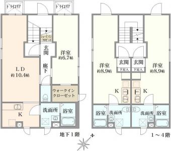 | 土地面積 | 77.39m2(23.4坪) 登記簿 | 建物延面積 | 231.37m2 |