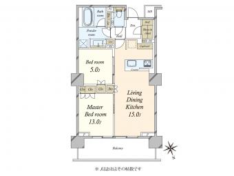 | 間取り | 2LDK | 専有面積 | 60.14m2(18.1坪) 壁芯 |