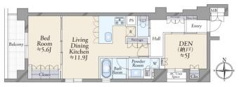 | 間取り | 1SLDK | 専有面積 | 57.22m2(17.3坪) 壁芯 |