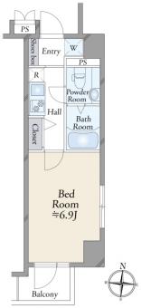 | 間取り | 1K | 専有面積 | 22.91m2(6.9坪) 壁芯 |