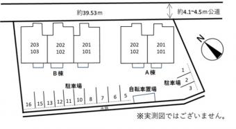 | 備考 | 建築基準法第22条区域/居住誘導区域/景観法/ 1棟売りアパート/●A棟 用途:共同住宅 構造:木造瓦葺3階建 面積 1階109.72平米 2階104.75平米 3階28.10平米 合計242.57平米(公簿) 間取り:2LDK(54.86平米)×2戸、2LDK(64.32平米)×2戸 ●B棟 用途:共同住宅 構造:木造瓦葺3階建 面積:1階164.58平米 2階157.13平米 3階42.16平米 合計363.87平米(公簿) 間取り:2LDK(54.86平米)×3戸、2LD?(65.14平米)×3戸/駐車場13台有/サブリース契約中、契約期間:令和7年2月7日~契約終了日の定めなし/サブリースの承継は不可のため表記年収はサブリース解約後のものを記載/オーナーチェンジ/北東側公道約4.1m~4.5m/ |