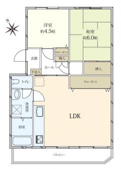 | 間取り | 2LDK | 専有面積 | 58.35m2(17.6坪) 壁芯 |