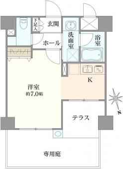 | 間取り | 1K | 専有面積 | 26.17m2(7.9坪) 壁芯 |