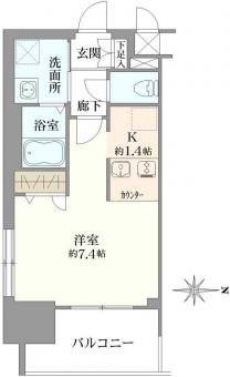 | 間取り | 1K | 専有面積 | 24.09m2(7.2坪) 壁芯 |