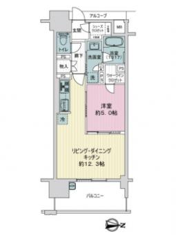 | 間取り | 1LDK | 専有面積 | 45.00m2(13.6坪) 壁芯 |