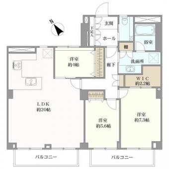 | 間取り | 3LDK | 専有面積 | 90.41m2(27.3坪) 壁芯 |