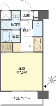 | 間取り | 1K | 専有面積 | 25.02m2(7.5坪) 壁芯 |