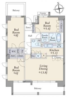 | 間取り | 3LDK | 専有面積 | 85.30m2(25.8坪) 壁芯 |