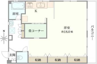 | 間取り | 1R | 専有面積 | 44.48m2(13.4坪) 壁芯 |