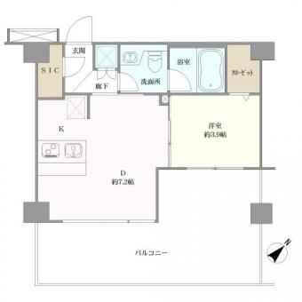 | 間取り | 1DK | 専有面積 | 31.91m2(9.6坪) 壁芯 |