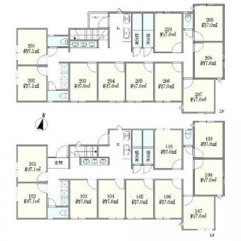 | 各住戸(居住用)の専有面積 | 最小面積:7.01㎡~最大面積:7.10㎡ | ||