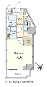 | 間取り | 1K | 専有面積 | 24.55m2(7.4坪) |