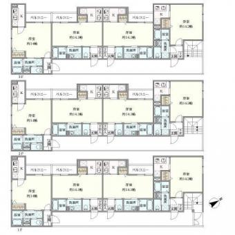 木造3階建、1K、12戸(満室時想定年間賃料収入9,864,000円)