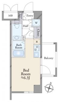 | 間取り | 1K | 専有面積 | 20.86m2(6.3坪) 壁芯 |