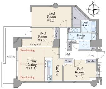 | 間取り | 3LDK | 専有面積 | 83.66m2(25.3坪) 壁芯 |