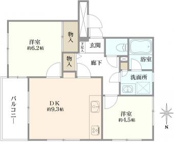 | 間取り | 2DK | 専有面積 | 47.84m2(14.4坪) 壁芯 |