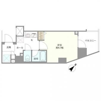 | 間取り | 1K | 専有面積 | 22.51m2(6.8坪) 壁芯 |