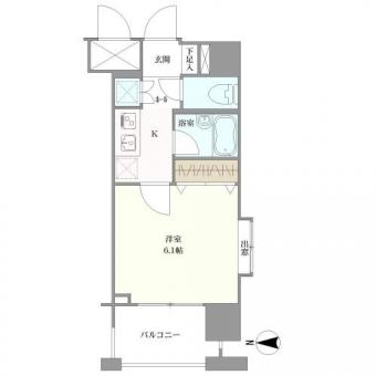 | 間取り | 1K | 専有面積 | 21.54m2(6.5坪) 壁芯 |
