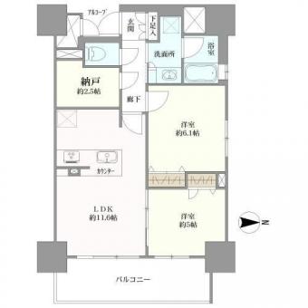 | 間取り | 2LDK+納戸 | 専有面積 | 58.52m2(17.7坪) 壁芯 |