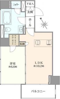 | 間取り | 1LDK | 専有面積 | 42.64m2(12.8坪) 壁芯 |